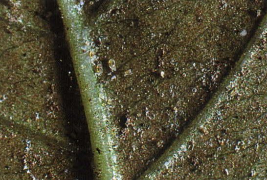 Bei den Milben handelt es sich um winzige, meist unter 1mm lange Vertreter der Spinnentiere. Sie stechen mit ihren Mundwerkzeugen vor alllem das Blattgewege an und saugen den Inhalt aus. Milben vermehren siech durch Eier, die sie in großer Zahl ablegen. Die Blätter werden silber-, später bronzefarben, welken und sterben ab. Da Milben in der freien Natur viele Feinde haben, sollte man bei der Bekämpfung besonders darauf achten, daß man Nützlingsschonende Mittel wählt. Schäden an den Pflanzen werden durch Triebstauchungen oder Blattverkrümmungen sichtbar.
